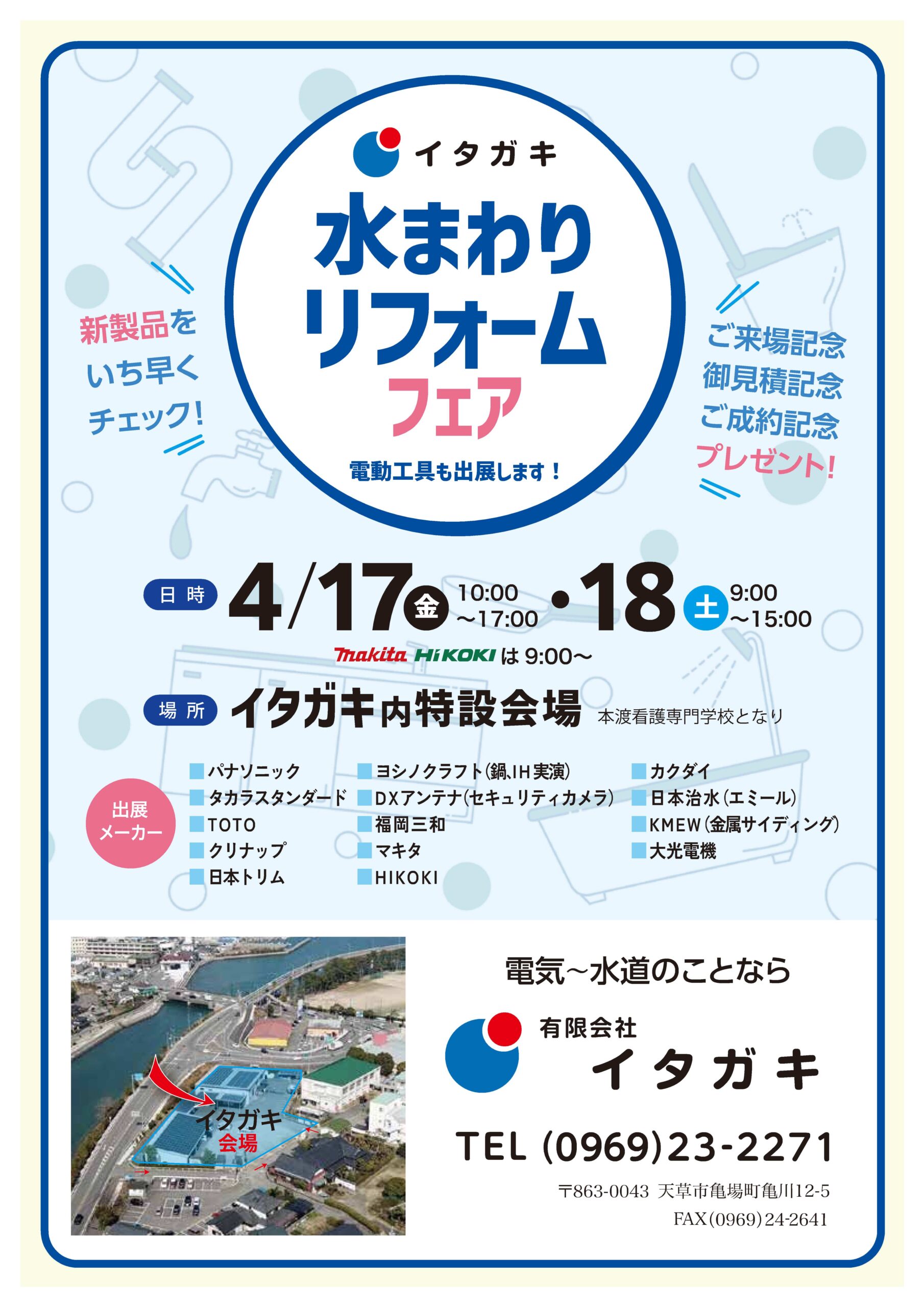 - 4月17日(金) 10:00〜17:00 (※マキタ・HiKOKIの展示は9:00〜スタート)